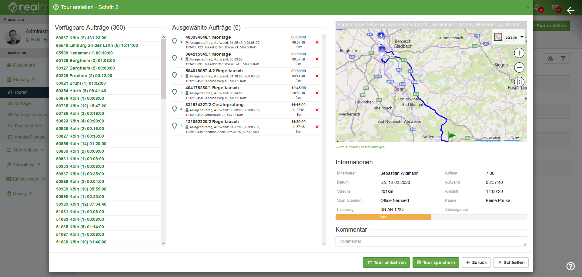 Realroute erleichtert Ihnen die Planung Organisation sowie den Ablauf in ihrem Unternehmen.